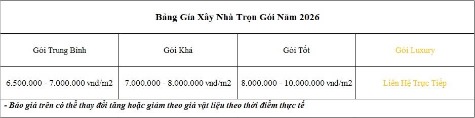 Báo Giá Xây Nhà Trọn Gói Năm 2026