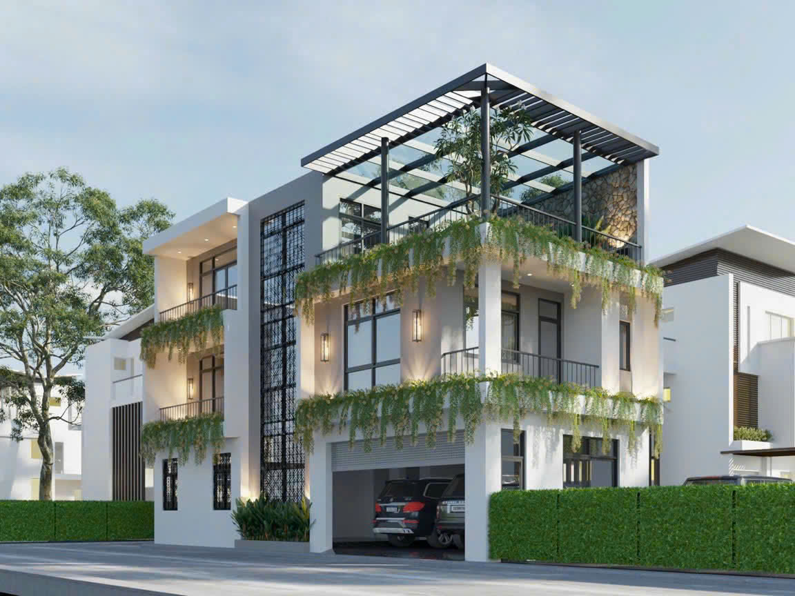 - Tầng 3 : 1 bếp + 1 wc + khu vực sảnh chung hành lang làm khu vui chơi cho trẻ + sân mái kính uống trà trồng cây xanh.