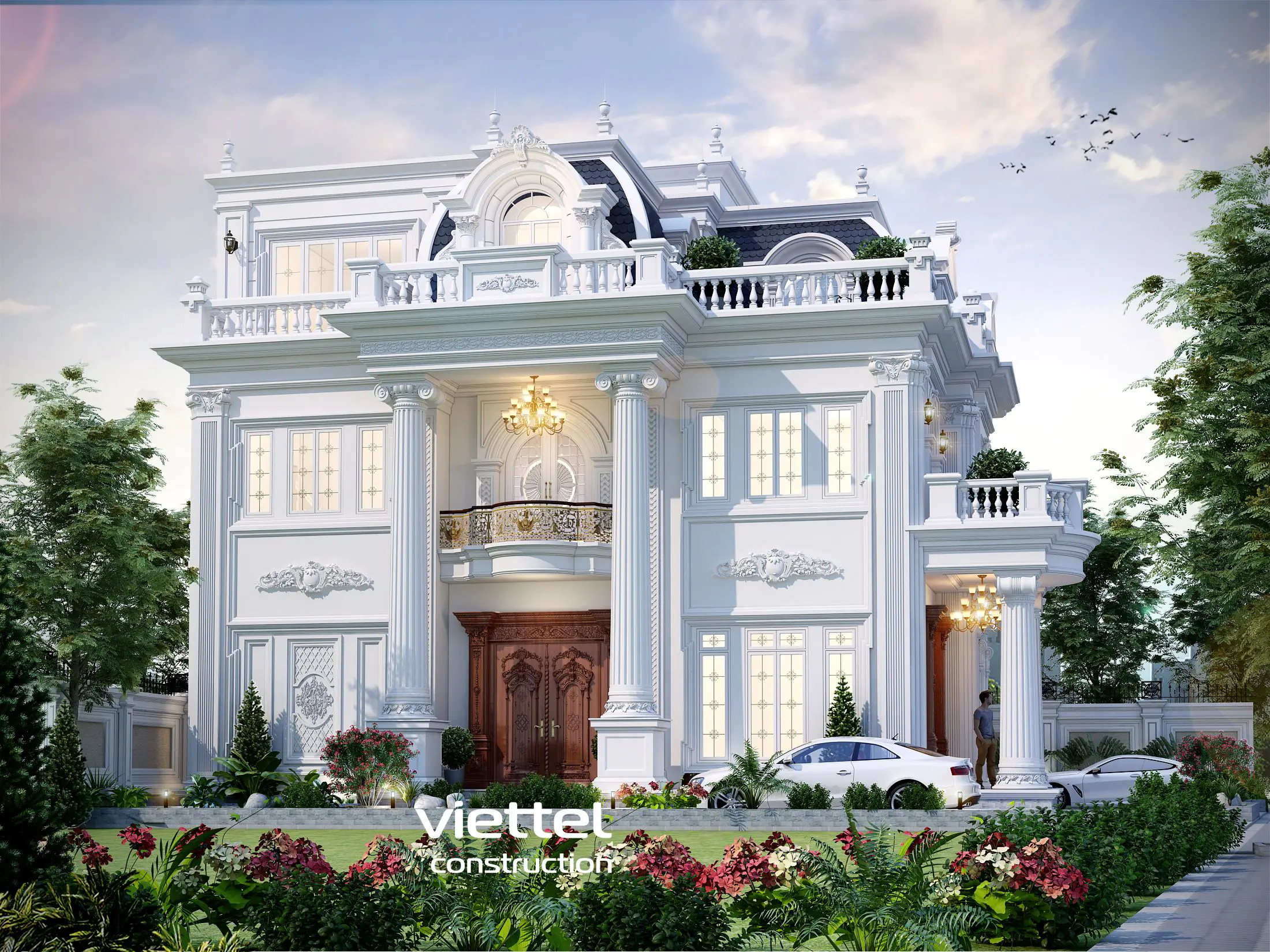 Mẫu biệt thự tân cổ điển mái Pháp 3 tầng - BTTCDMP03041