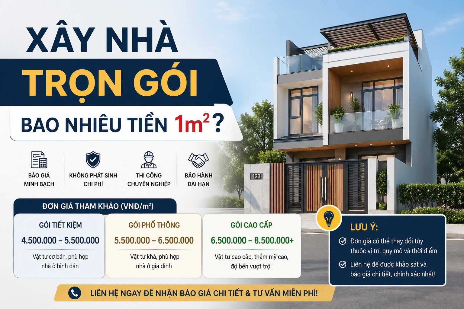 Để đảm bảo câu trả lời cho "Xây Nhà Trọn Gói Bao Nhiêu Tiền 1m2" sát thực tế, chủ đầu tư nên: