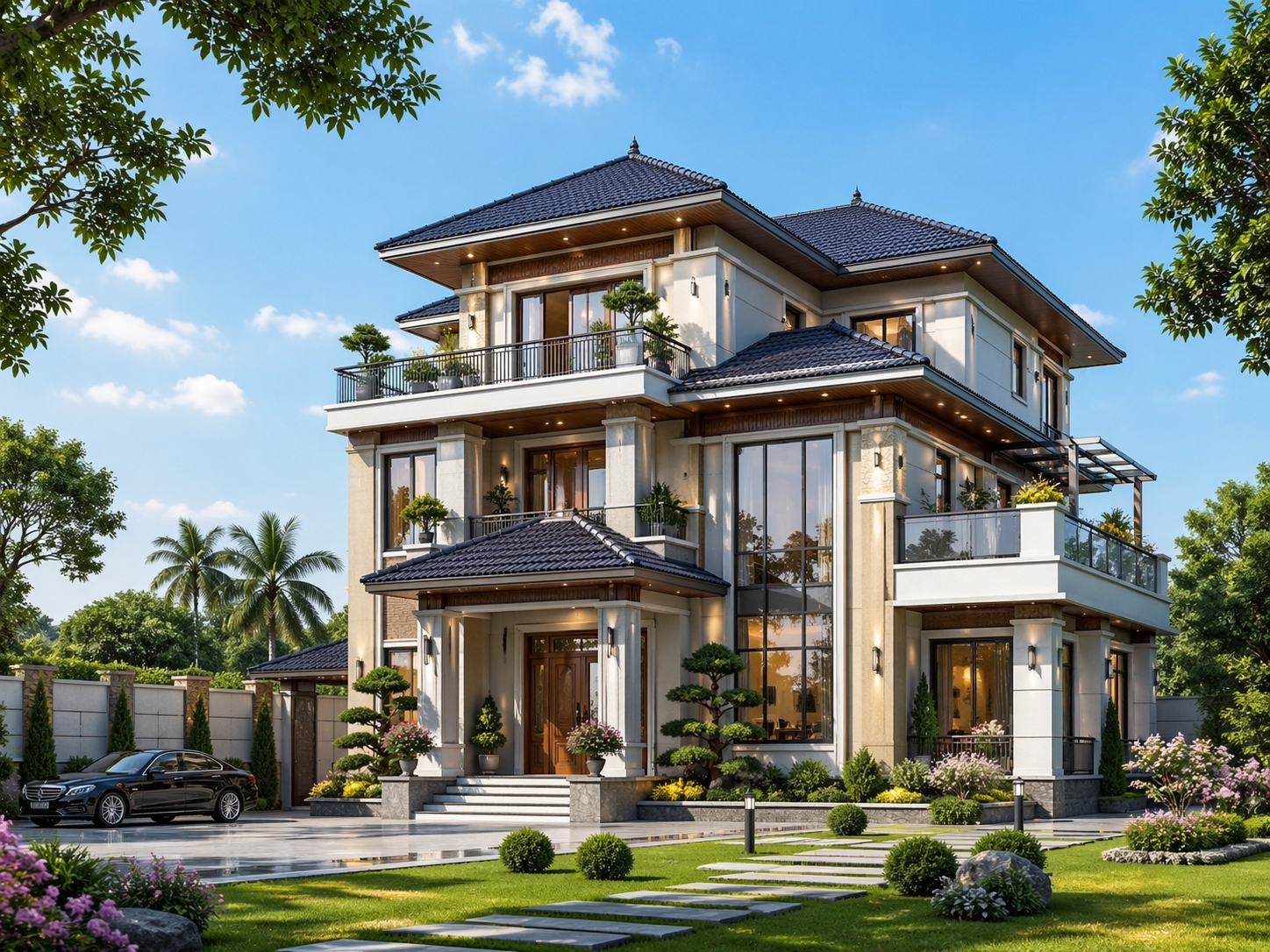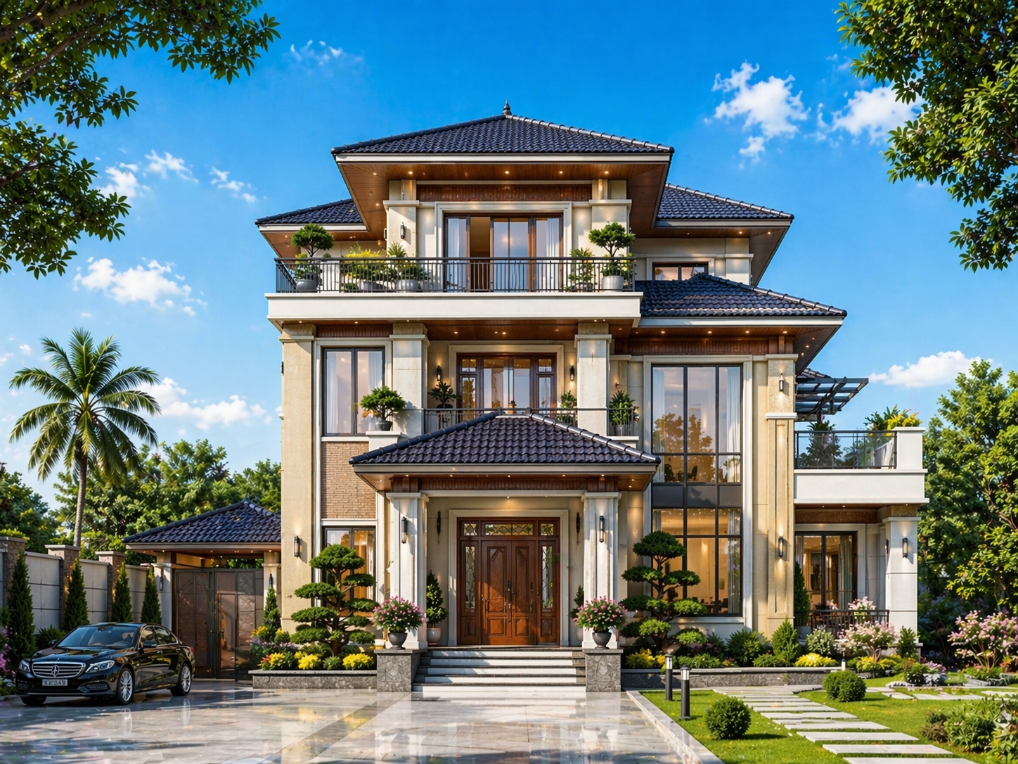 Mẫu Biệt Thự Mái Nhật 3 Tầng Sang Trọng